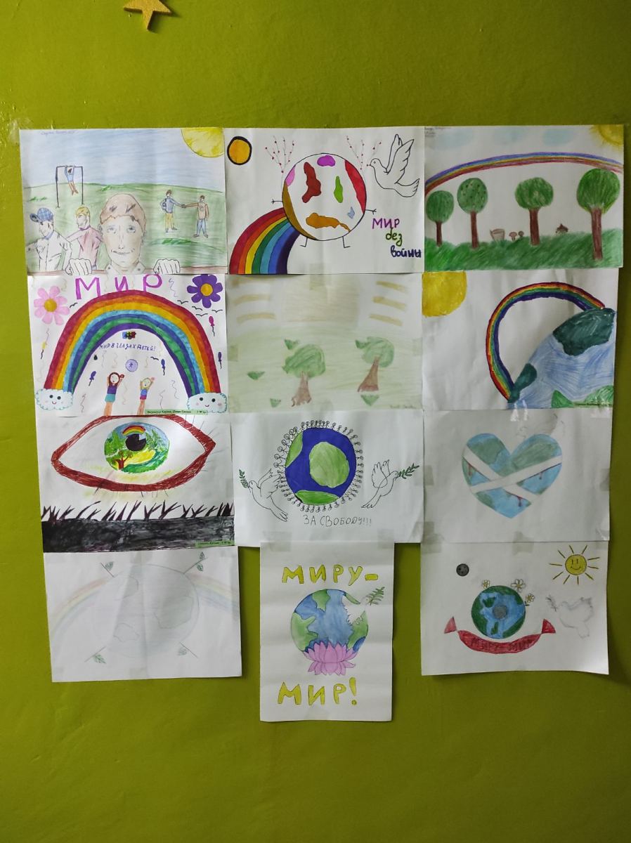 В рамках проведения мероприятий, посвященных «Ми ру глазами детей» в нашем лицее были проведены внеклассные мероприятия, беседы, конкурсы рисунков, изготовление продукта на тему «Мир без Войны»